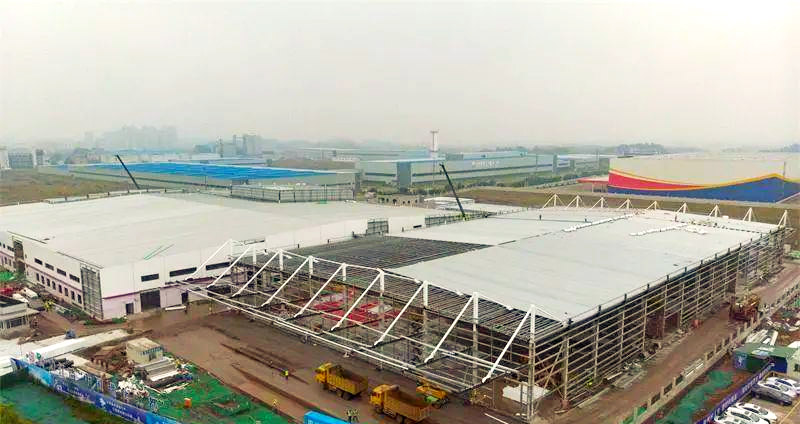 近日,四川內江飲料生產基地廠房主體鋼構已圓滿收工,目前正聚焦于外立面的施工細節,同時展開倉庫屋頂頂棚鋼板的鋪設工作。