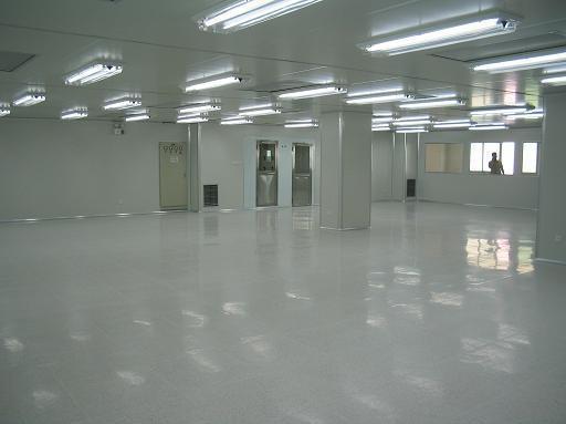 圓弧墻角、門、窗框等一般采用專用氧化鋁型材制造地面可采用環氧自流坪地坪或高級耐磨塑料地板,有防靜電要求的,可選用防靜電型。