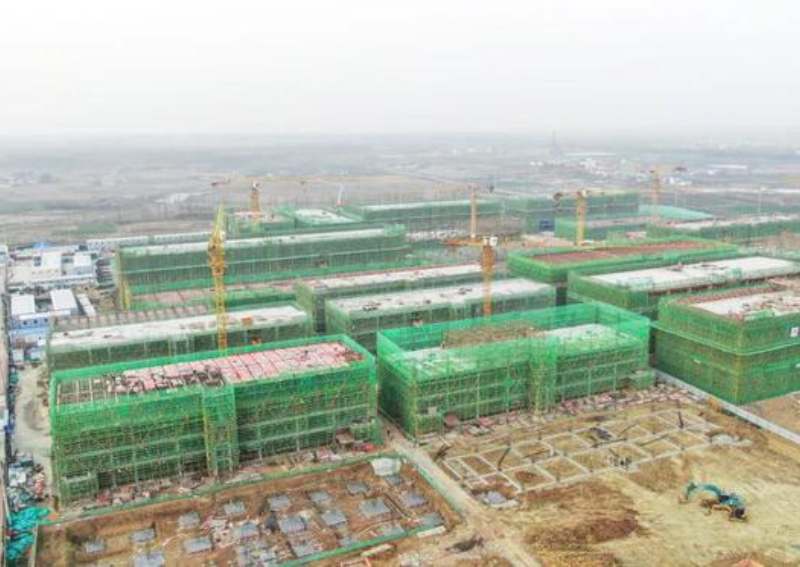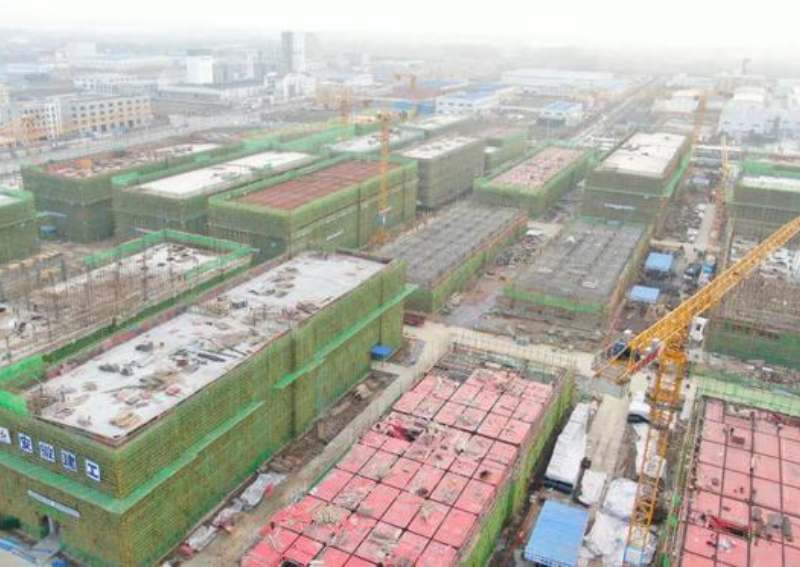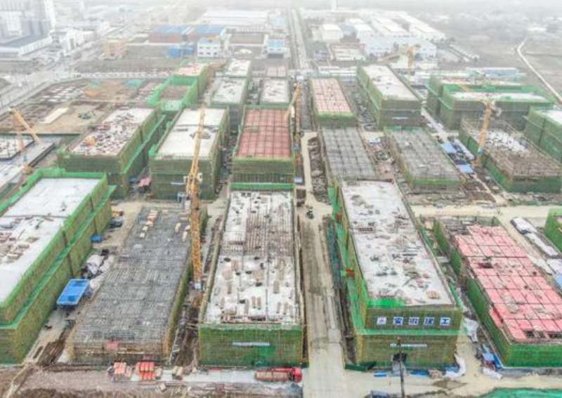 走進建設現場,只見塔吊林立、機聲轟鳴,一棟棟廠房已拔地而起。